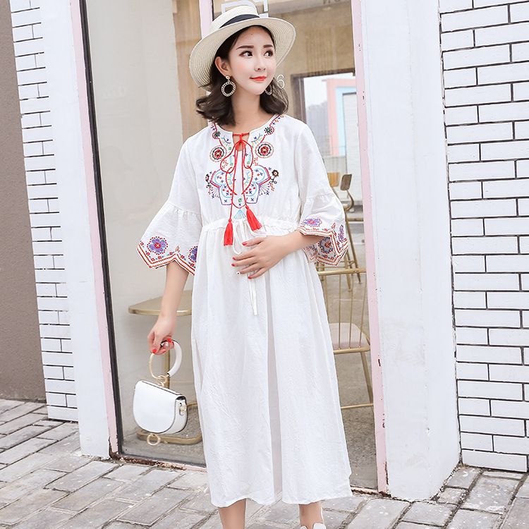 2019 Maternity Dress For Pregnant Women Summer Elegant Embroidery