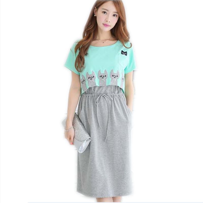 2019 New Breastfeeding Clothing Maternity Dresses Cute Character