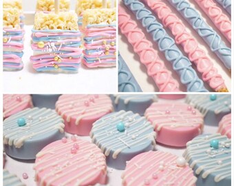 Of course the easiest dessert of all is dipped strawberries. Below we have some recipes for gender revealing desserts. Because they are often cute and.