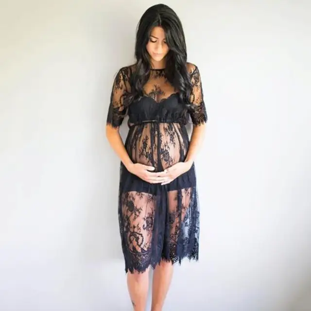 Pregnant Women Eyelash Lace Short Sleeve Photography Props Maternity