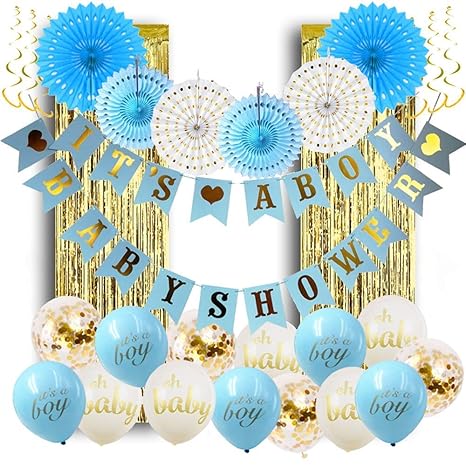 2018 Amazon Its A Boy Baby Shower Banner Balloon Pom Poms Favors