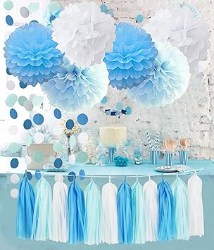 Furuix 20pcs Baby Shower Boy Decorations Boy Tassel Garland Paper