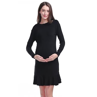 Womens Maternity Dress Bodycon Ruched Long Sleeve Fishtail Pregnant