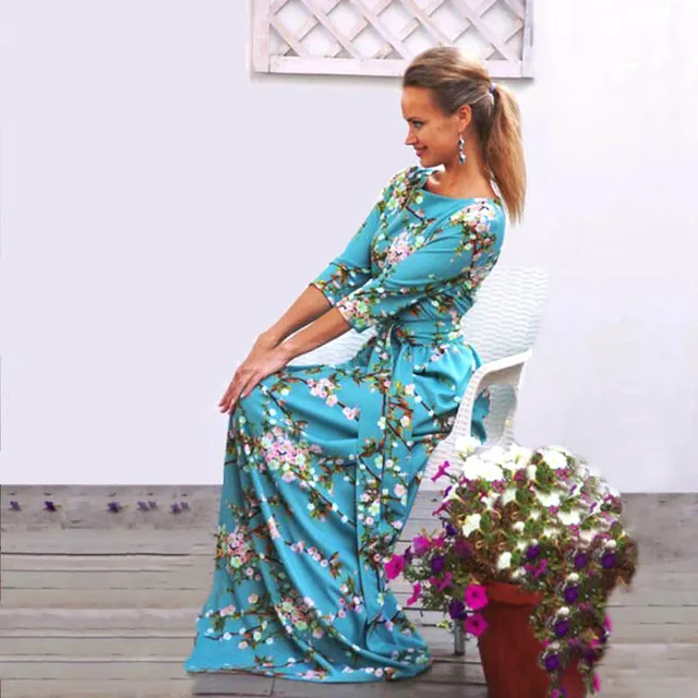 Chic Vintage Maternity Maxi Dress Floral Print Wanita 34 Lengan O