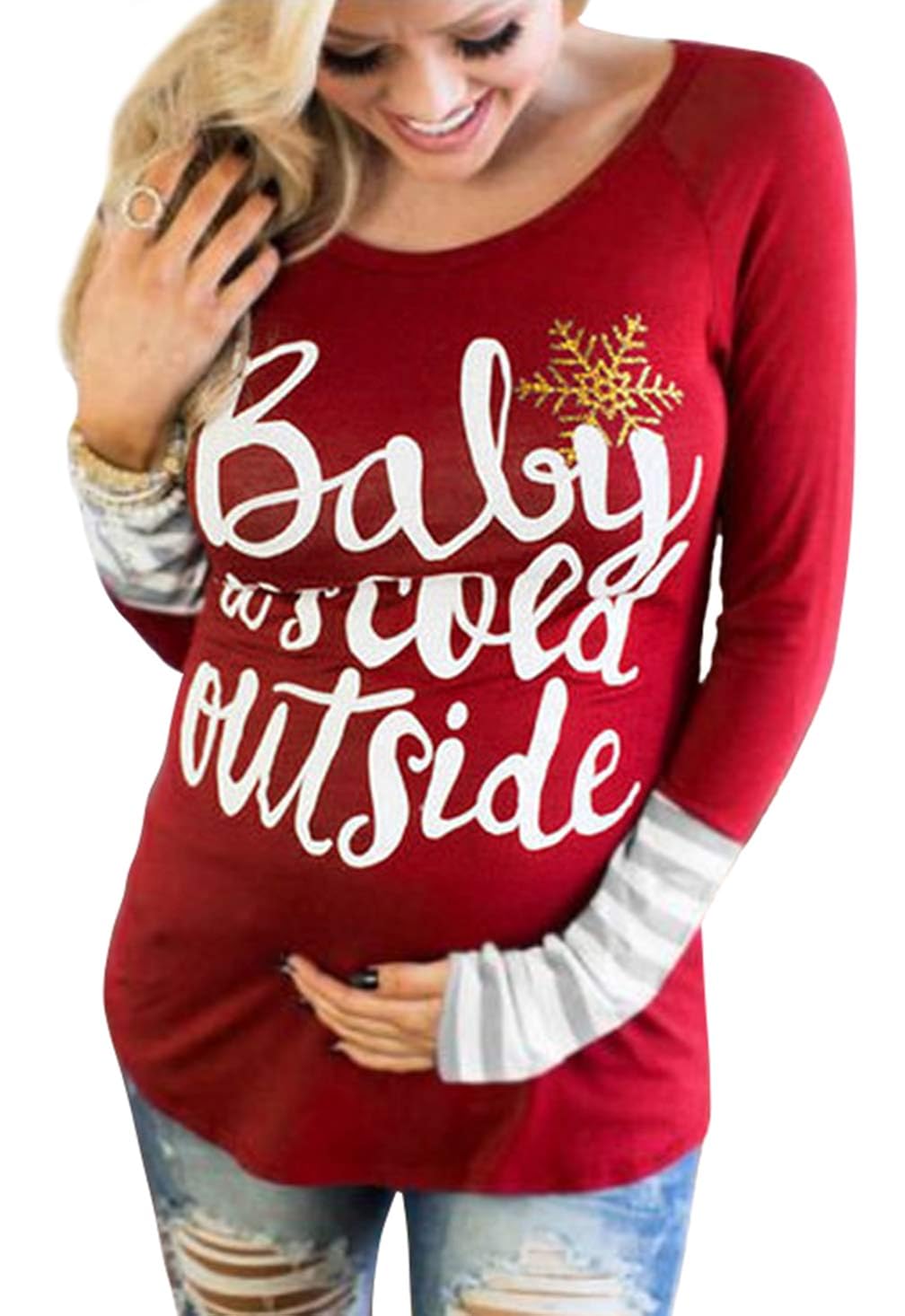 Funny Pregnancy Tee Christmas Maternity Clothes Tops Holiday Party