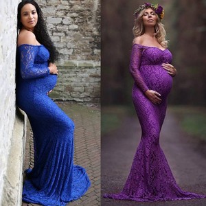 Shoulderless Lace Maternity Dress For Photo Shoot Maternity