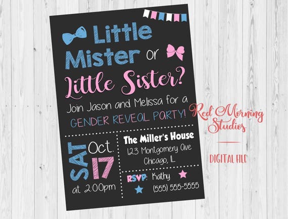 Little Mister Or Little Sister Gender Reveal Party Invitation Etsy