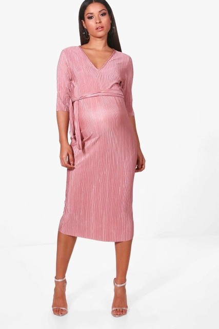 Boohoo Maternity Hope Pleated Midi Dress Mink Size Uk 16 Dh180 Mm 05