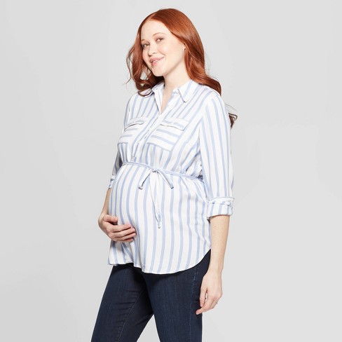 Maternity Striped Long Sleeve Popover Tunic Top Isabel Maternity By Ingrid Isabel Blue Xxl